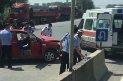 惊险一幕!阜阳一轿车撞上隔离带,一男子腿部被卡送医救治...