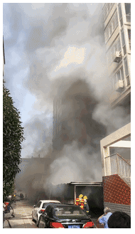 朋友圈转发的火灾现场视频也可以看到,火灾发生时,黑色的浓烟滚滚上升,大约有几十米高,可以想见车棚内的情况的确很麻烦。